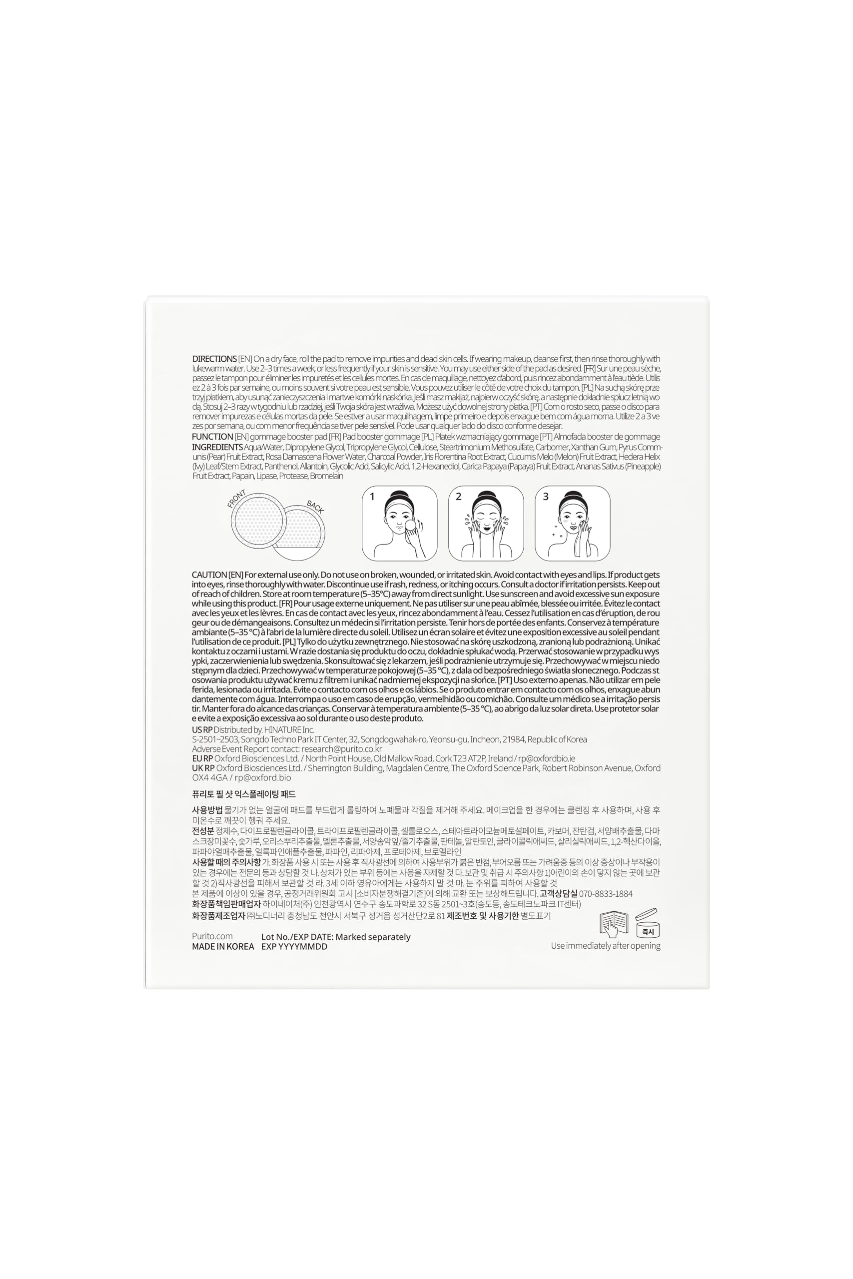 PURITO PEEL SHOT Exfoliating Pad | for Blackheads, Whiteheads & Pores | Charcoal + Enzyme Deep Clean | Instant Glow & Smooth Texture | Gentle Daily Exfoliation | Korean Skincare, 8 Pads